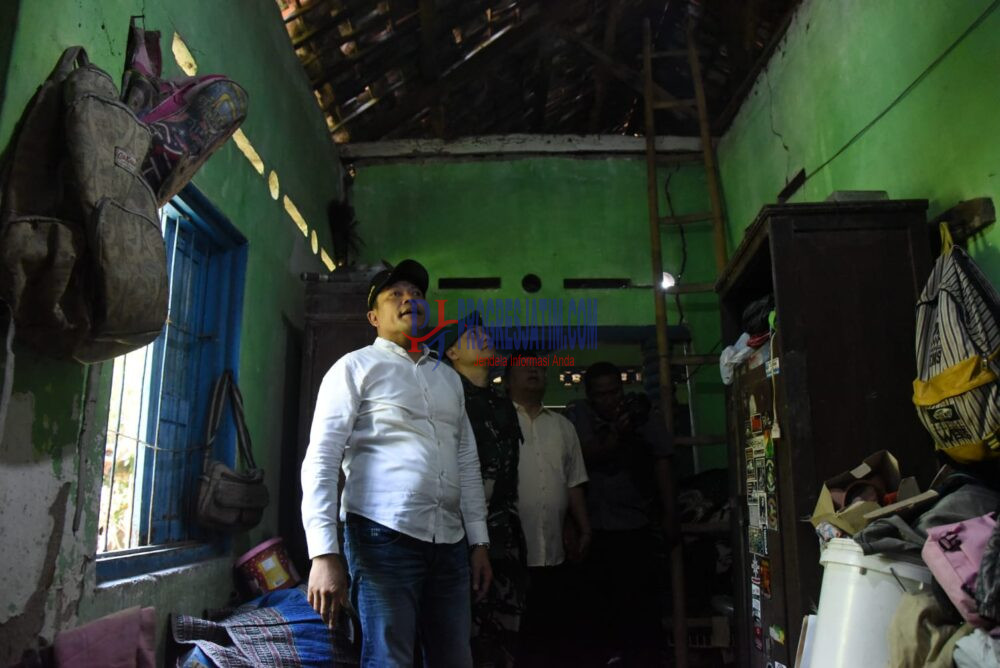 “Nanti dikawal pak Kades biar rumahnya beliau segera diperbaiki,” ucap bupati usai melihat rumah Nur Hayati warga Dusun Tempuran Desa Tarik.
